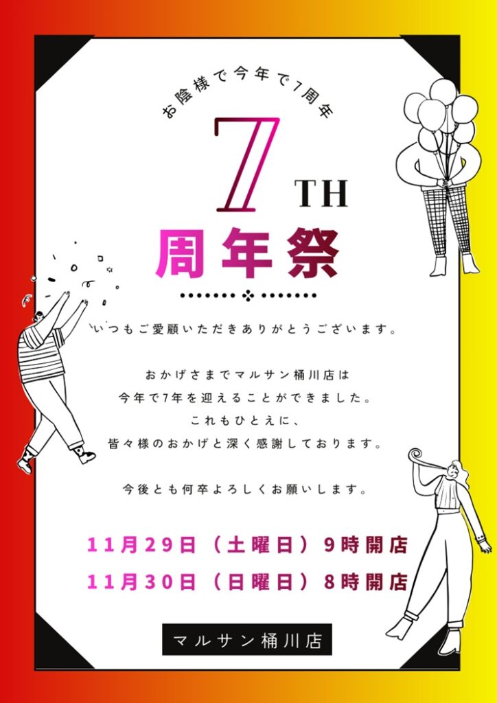 ぜひ11月の最終週はマルサン樋川店の7th周年祭weekとクライマックスにお越しくださいませ!