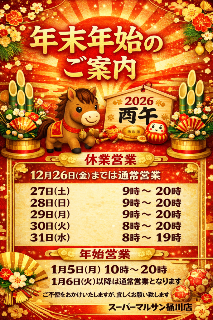 本年度もご愛顧いただきありがとうございました。新年あけて1月1日(木・元旦)~4日(日)までは市場休場の為、4日間の店休をいただきます。新年からもお客様の為に店を目指して精いっぱいがんばります(*‘∀‘)