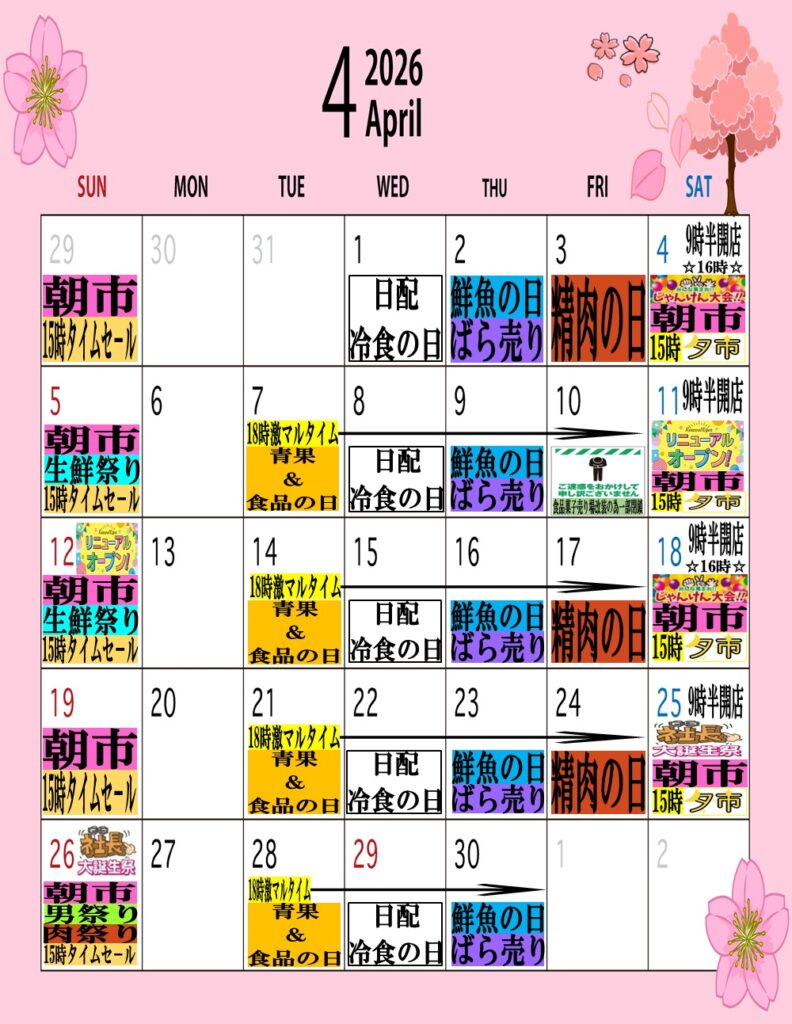 マルサン樋川店4月のイベントカレンダーです♪